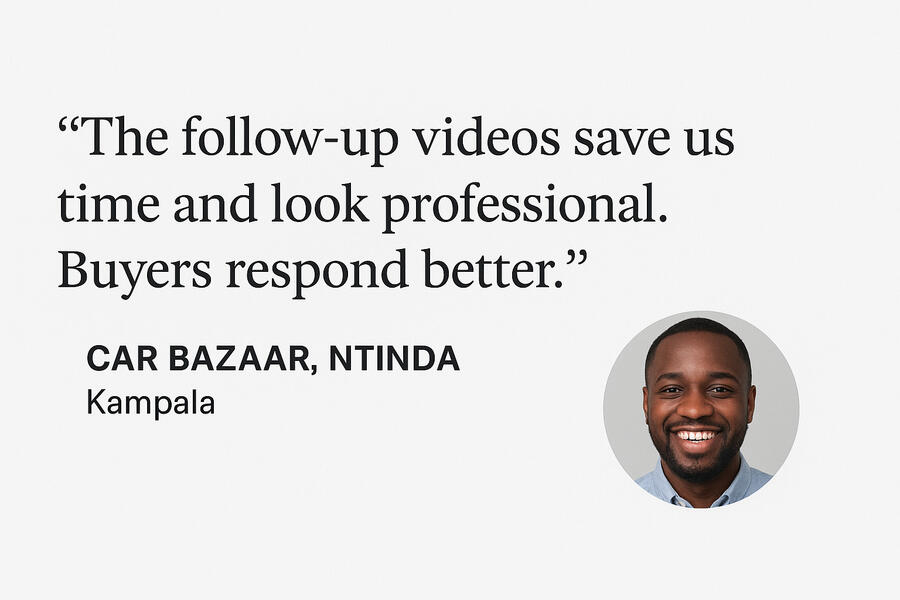 1️⃣ Dealer alerts us2️⃣ We prepare video + health report3️⃣ Buyer receives follow-up (WhatsApp/SMS/Email)4️⃣ We track and follow-up.